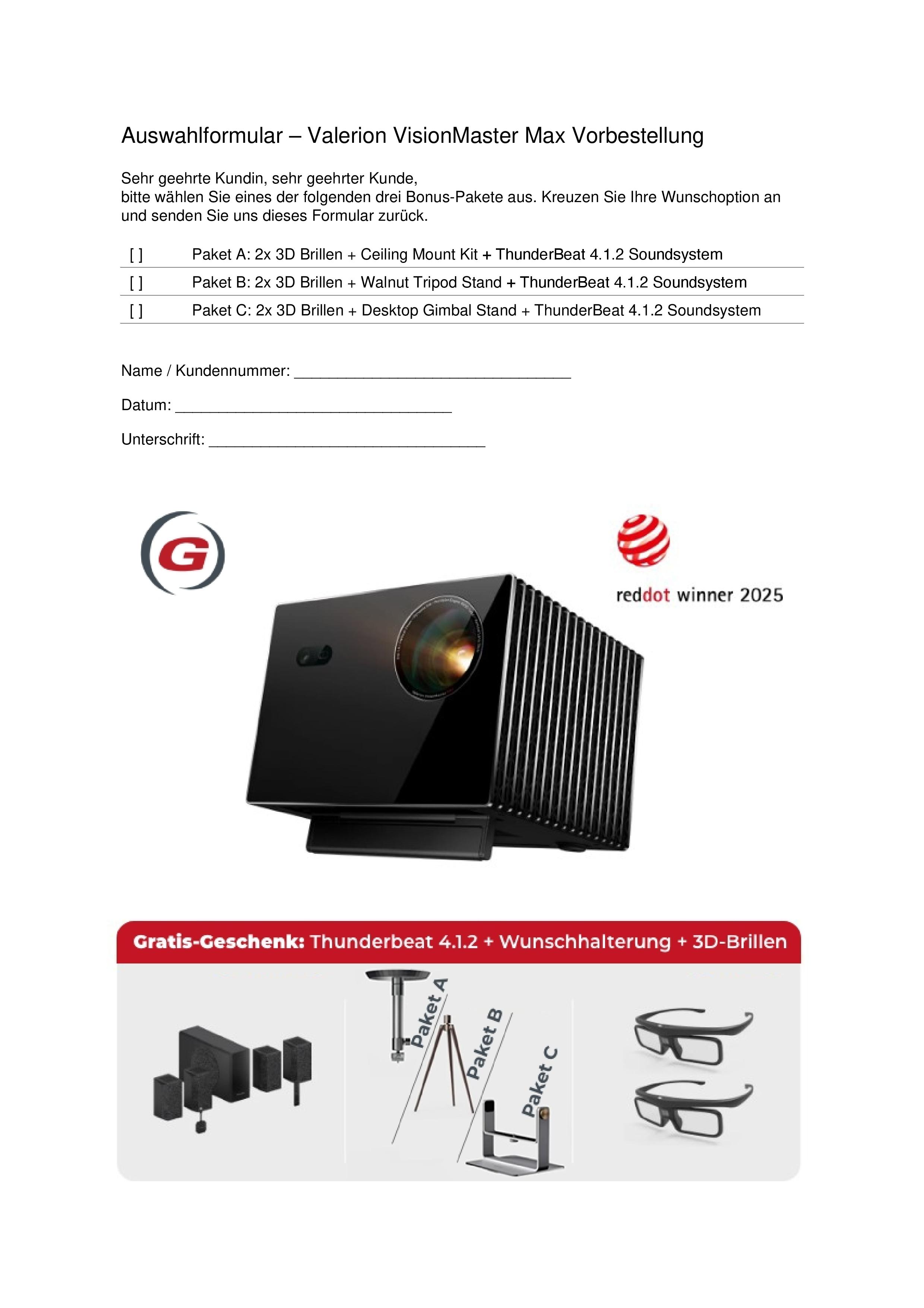 In eigener Sache. Status Update zum Bestellvorgang ValerionMaster Max Projektor