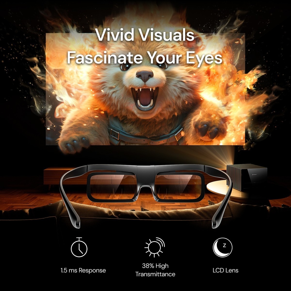 Erleben Sie echtes 3D-Kinoerlebnis zuhause: Die 3D DLP-Link Shutterbrille wurde speziell für 3D-fähige LaserTVs und Projektoren von Valerion, AWOL Vision, Dangbei, BenQ, JMGO, Hisense, Optoma, Formovie und XGIMI entwickelt. Ausgestattet mit einem modernen Smart-Chip, liefert sie eine nahezu fehlerfreie Synchronisation und sorgt für eine brillante 3D-Darstellung – selbst auf anspruchsvollen CLR- oder SoftFresnel-Leinwänden.
