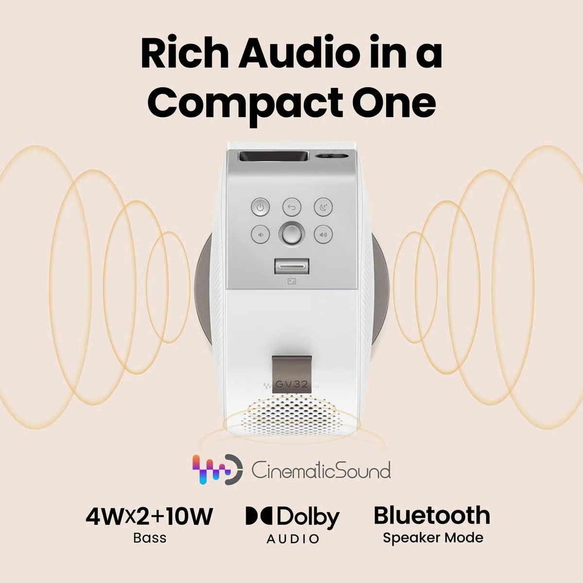 Besonders praktisch ist der spezielle Ceiling-Cinema-Sound-Modus, der den Klang auf die Deckenprojektion abstimmt. Ob Sie liegen oder sitzen – der BenQ GV32 sorgt für eine stimmige Wiedergabe. Zusätzlich lässt sich der BenQ GV32 auch als Bluetooth-Lautsprecher nutzen, was ihn im Alltag noch vielseitiger macht.