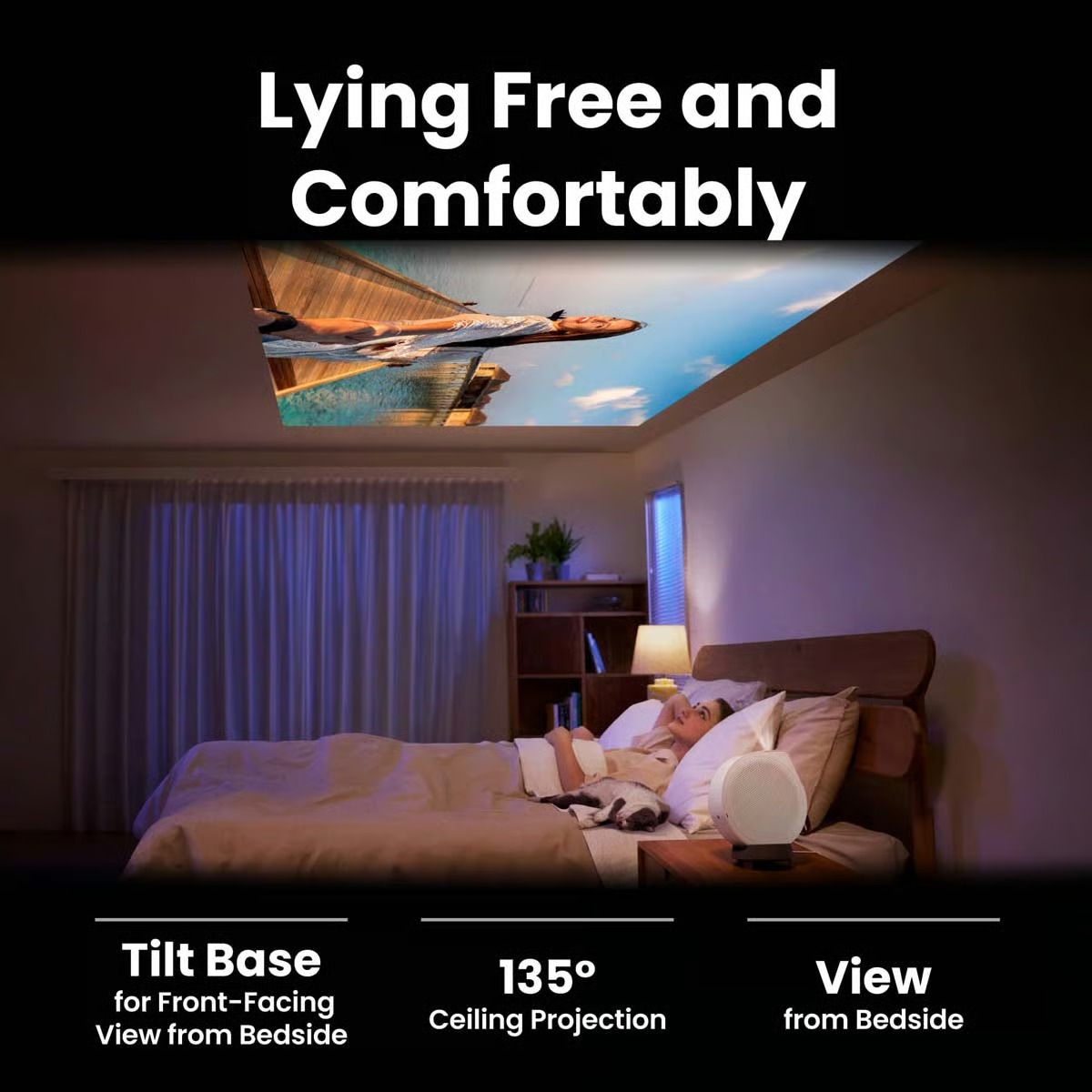 Gerade im Schlafzimmer ist das ein enormer Vorteil. Statt unkomfortabler Blickwinkel oder improvisierter Aufstellungen ermöglicht der BenQ GV32 entspanntes Fernsehen oder Streaming direkt an der Zimmerdecke. Einfach auf den Nachttisch stellen, ausrichten und loslegen. Der BenQ GV32 wurde genau für solche entspannten Nutzungsszenarien entwickelt und hebt sich damit deutlich von klassischen Beamern ab.