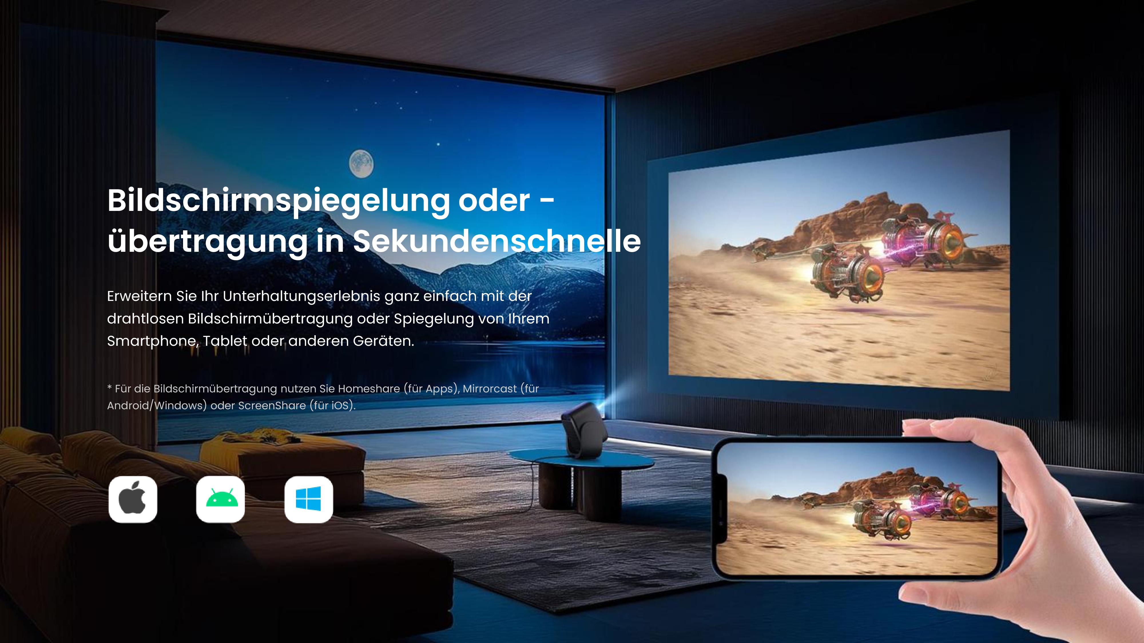 Ein herausragendes Merkmal des Dangbei 2 Mini ist seine Flexibilität in der Projektionsweise. Er ist nicht nur für die Wand geeignet, sondern kann auch problemlos an die Decke projiziert werden. Dies eröffnet spannende Möglichkeiten für Filmabende im Schlafzimmer oder für Präsentationen. Der integrierte Fuß ist beweglich und ermöglicht eine einfache Anpassung der Projektionsrichtung.