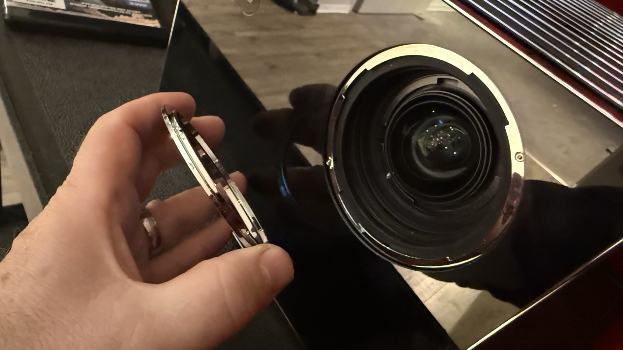 Exklusiv: Erste Fotos zeigen die Möglichkeit, den ValerionMaster Max mit Zubehörlinsen wie einem Anamorphoten zu erweitern. Nach Entfernung des Schutzglases werden spezielle Fixierpunkte sichtbar – perfekt für zukünftige Upgrades!