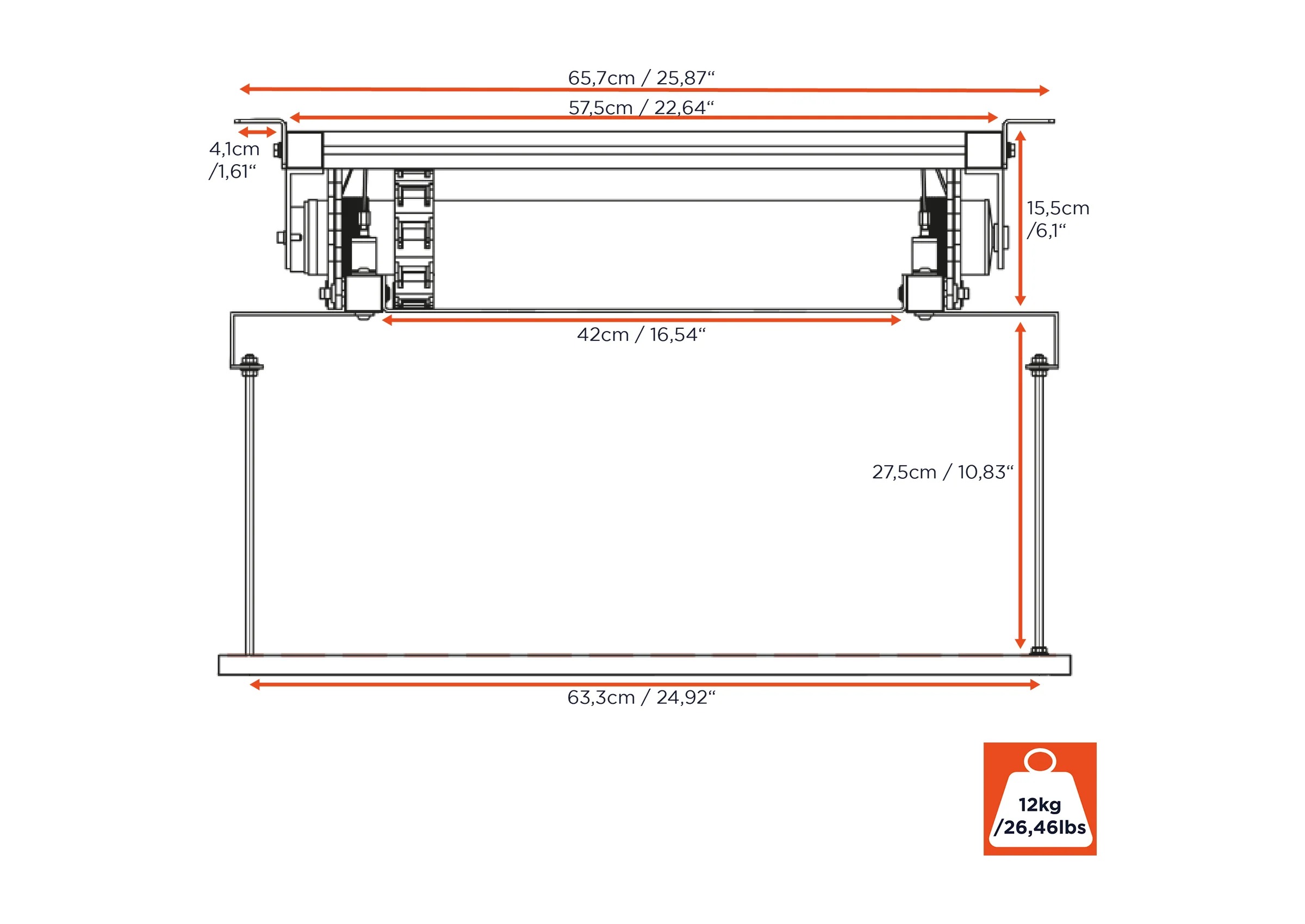 Auch größere Projektoren mit Abmessungen bis zu 57 x 60 cm können problemlos integriert werden.