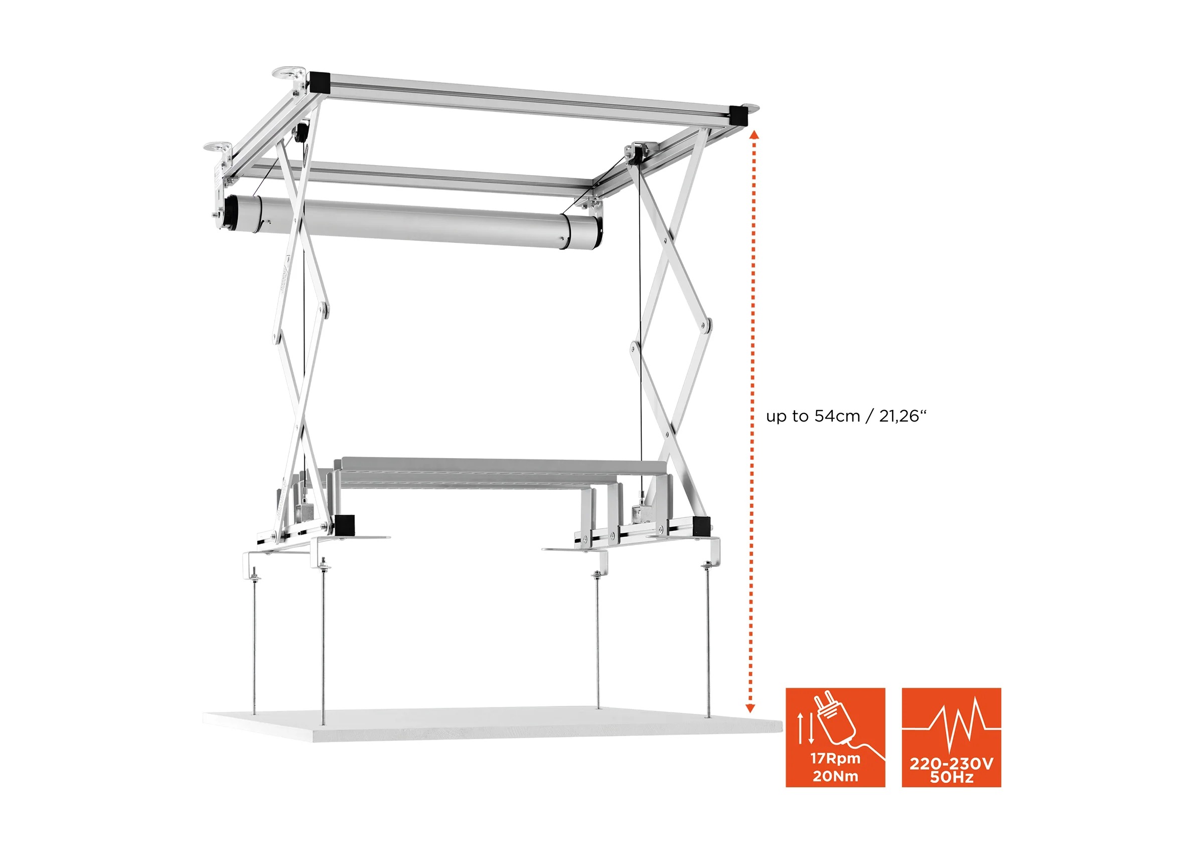 Deckenlift für große Projektoren bis 30 kg mit 14 bis 54 cm Einbautiefe, leisem Motor und flexibler Integration in Heimkino und Konferenzräume