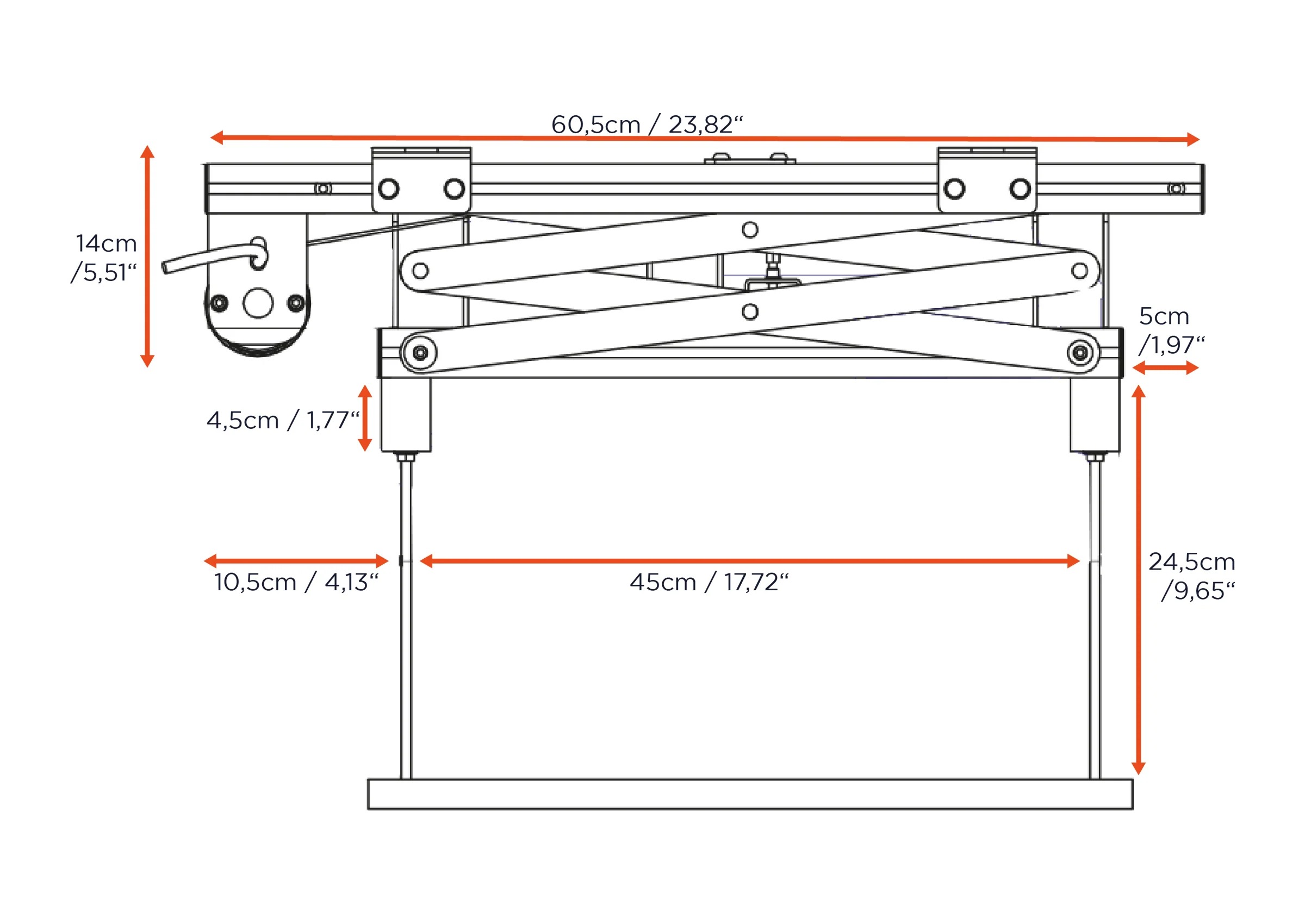 Der celexon PL400 HC Plus überzeugt durch seine intelligente Konstruktion mit einer minimalen Einbautiefe von nur 14 cm. Je nach Projektorhöhe kann der Lift flexibel angepasst werden und ermöglicht so eine Integration auch in flachere Deckenkonstruktionen.