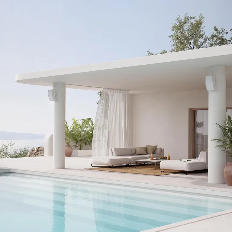 Outdoor-Installation muss nicht kompliziert sein. Mit der Click n’Connect-Halterung wird der Lautsprecher schnell montiert und angeschlossen. Die Kabelanschlüsse sind dabei praktisch und wettergeschützt gelöst, sodass das Setup sauber aussieht und sich auch an anspruchsvollen Positionen unkompliziert umsetzen lässt. Der Lautsprecher lässt sich flexibel ausrichten und sowohl horizontal als auch vertikal montieren – perfekt, um den Klang gezielt auf Sitzbereiche oder Zonen auszurichten.