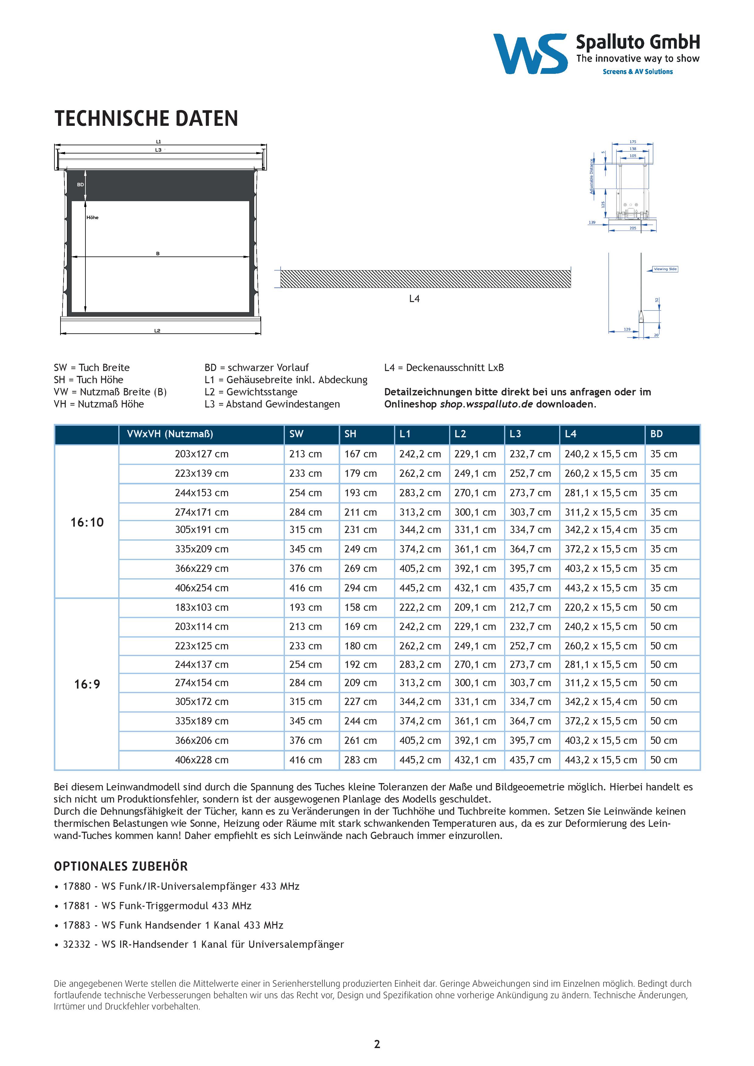 Professionelle Installation empfohlen Für ein optimales Ergebnis empfehlen wir die Installation durch einen Fachmann, besonders bei größeren Leinwänden ab 305 cm Bildbreite.