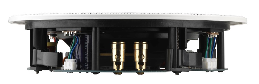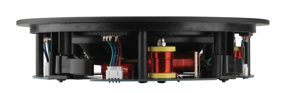 Superflacher Deckeneinbaulautsprecher mit Dreifach-Hochfrequenztreiber für eine breite Schalldispersion.
