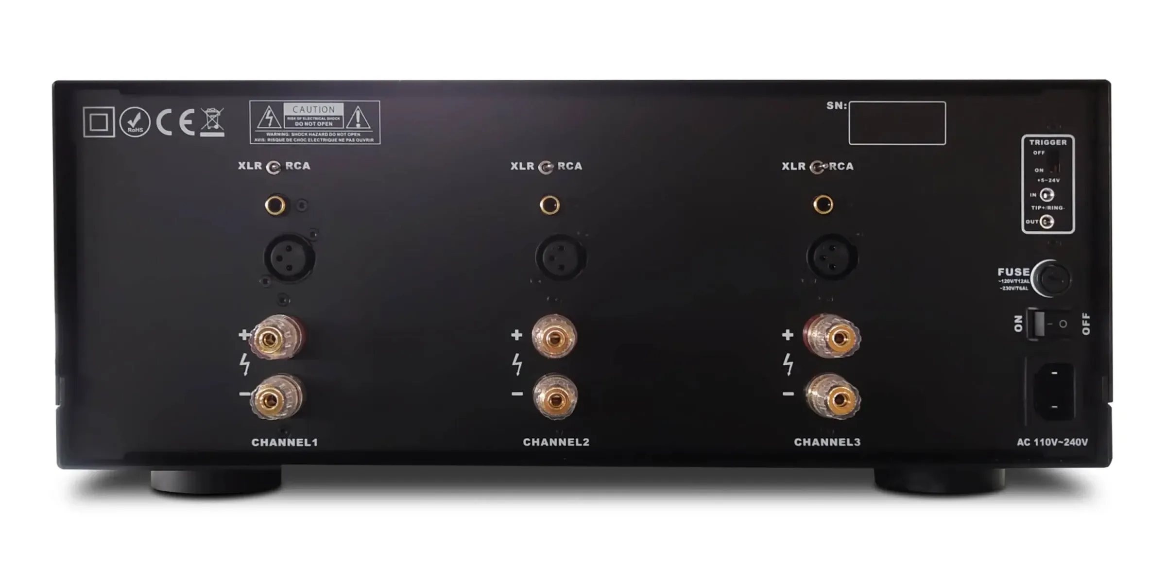 Leistungsstarke 3-Kanal Endstufe mit bis zu 300 Watt pro Kanal, massiver Stromversorgung und XLR-Eingängen für kontrollierten Heimkino- und HiFi-Sound.