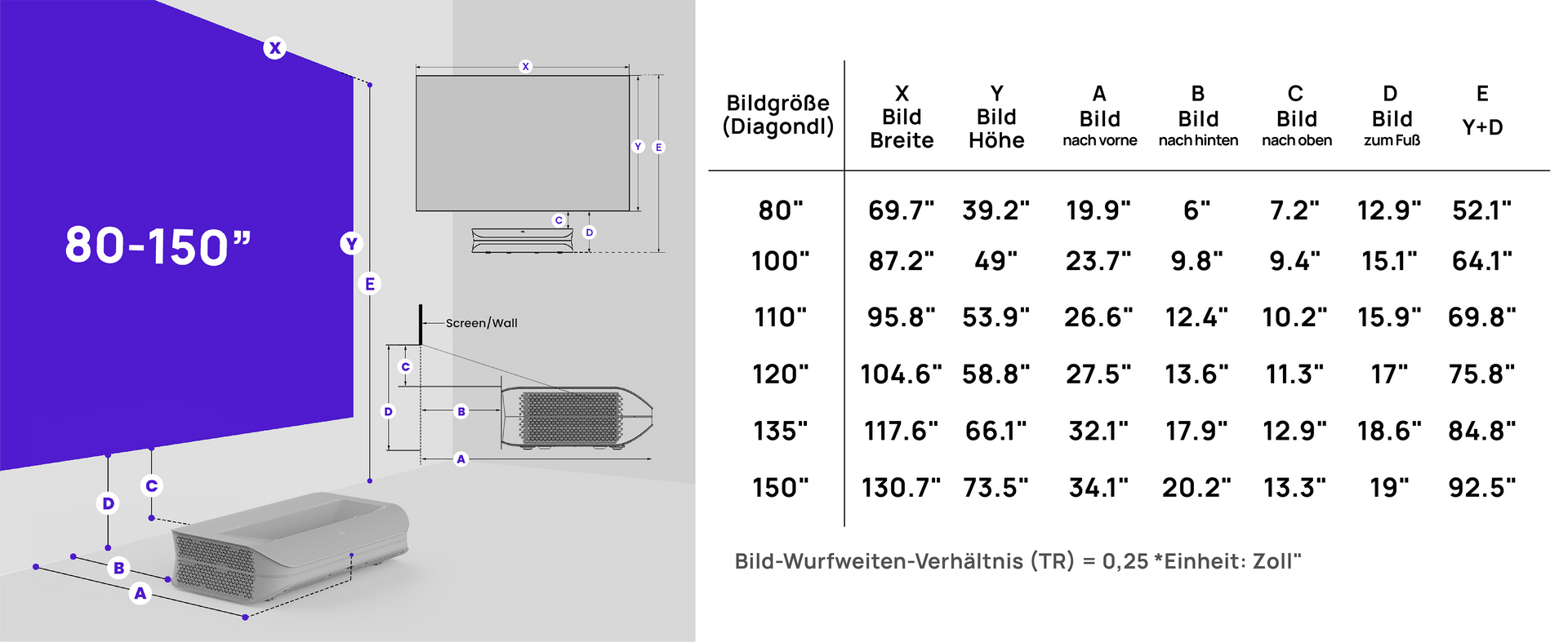 Großbildprojektion von 80"-150"