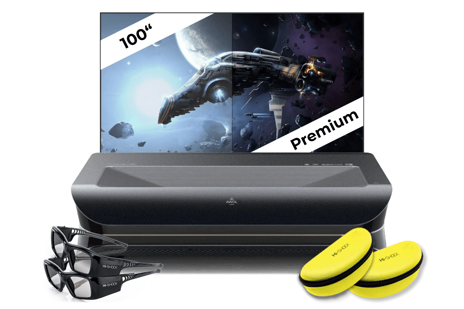 AWOL VISION LTV-3000 Pro | 4K 3D RGB Laser TV inkl. 2 3D-Brillen + 100" CLR (Premium) Rahmenleinwand