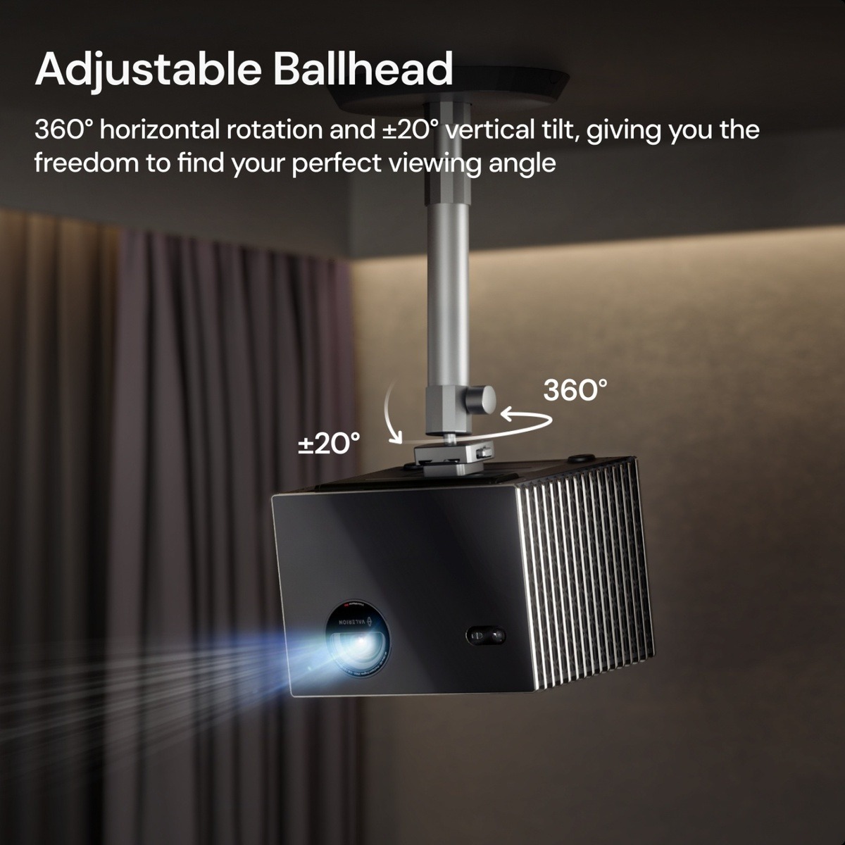 Mit der Valerion Deckenhalterung finden Sie immer den idealen Blickwinkel. Die 360° horizontale Drehung und ±20° vertikale Neigung bieten volle Flexibilität für eine optimale Bildausrichtung.