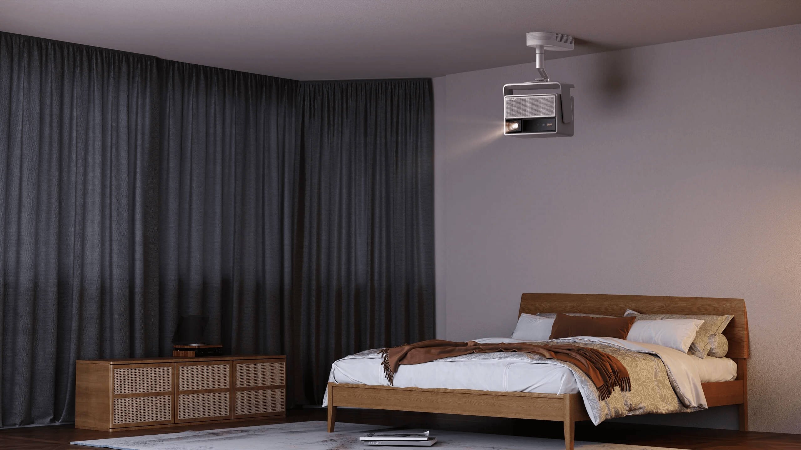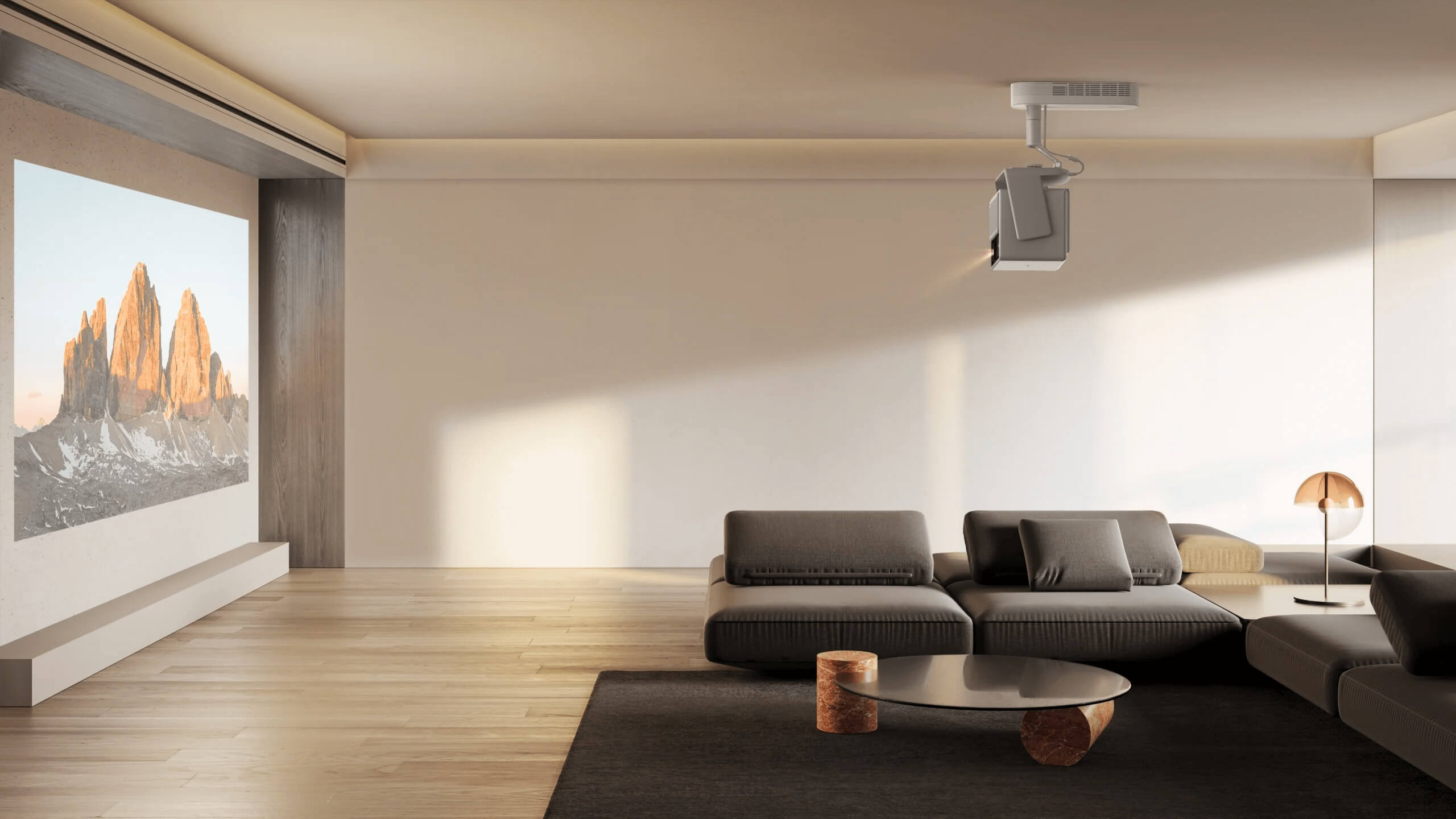 Hochwertige Deckenhalterung aus Aluminium für XGIMI HORIZON-, Elfin-, Halo- & MoGo-Serie. Traglast bis 6 kg, ±12° Neigung, verdecktes Kabelmanagement & integrierter Stauraum.