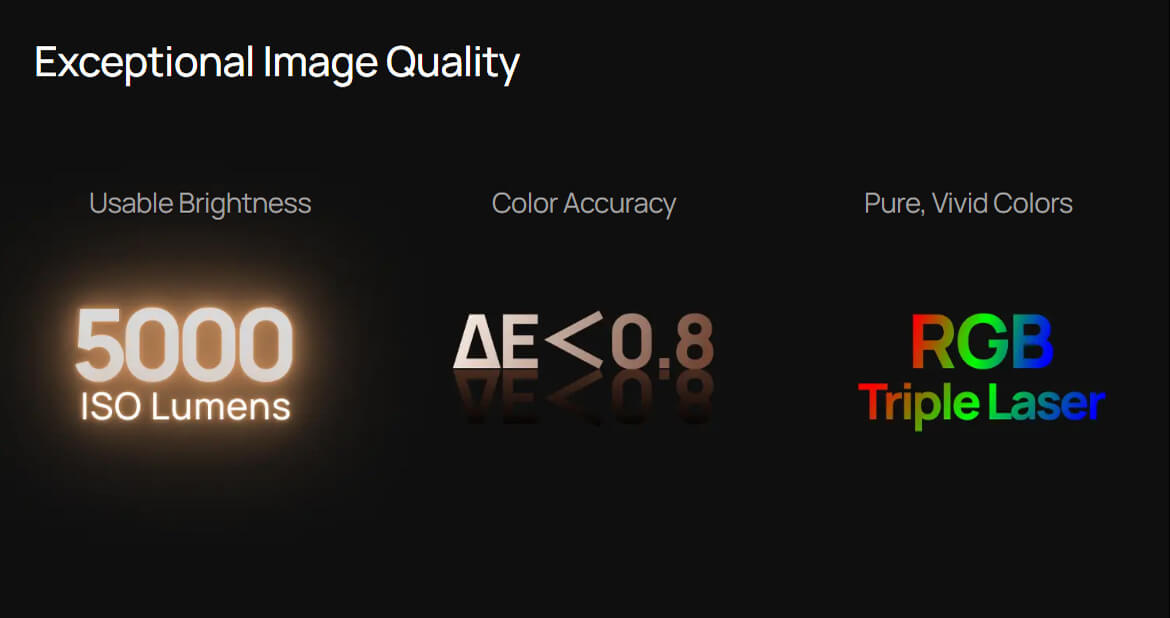 4K RGB Triple-Laser Projektor mit 5.000 ISO-Lumen, Dual-Iris-System, 10.000:1 Kontrast, Dolby Vision, IMAX Enhanced, Dynamic Tone Mapping und großzügigem Lens-Shift.